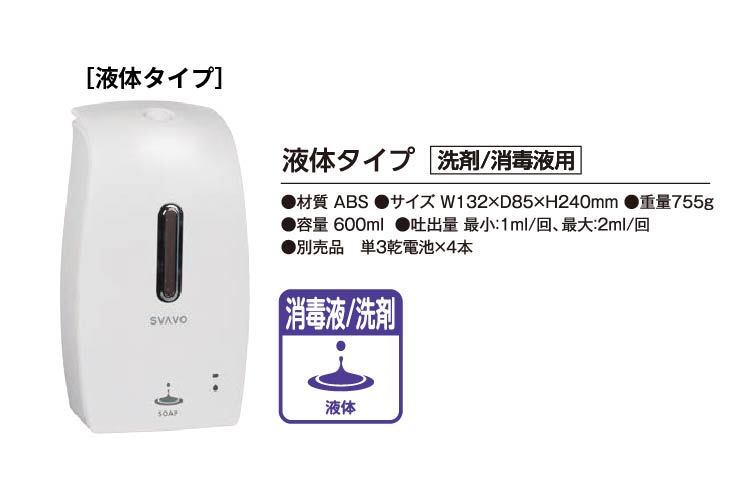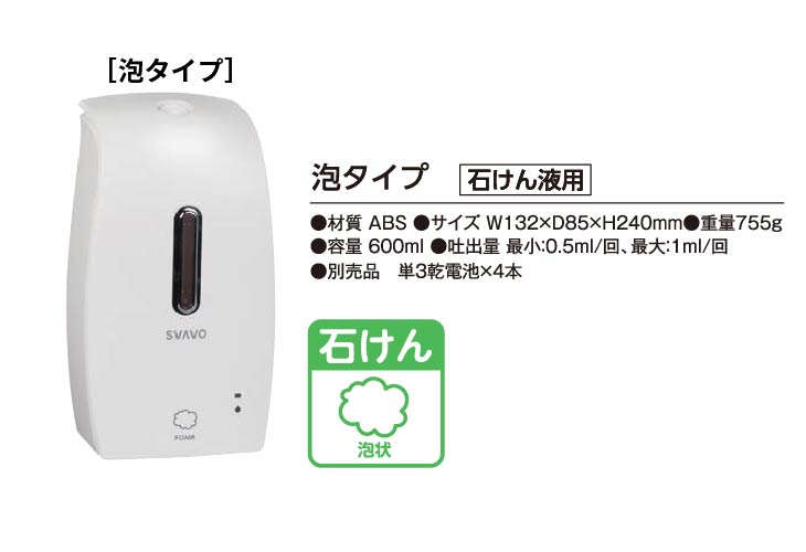 泡状・霧状・液状の3タイプ。専用のスタンドをつければスタンド型で使用可能。