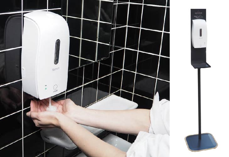 完全非接触型のセンサー感知・自動吐出。 専用スタンドを付ければ、スタンド型でご使用いただけます。 吐出量の設定が可能。